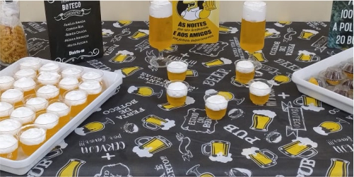 Gelatinas, arroz doce, canjica, bolos ou doces de bar